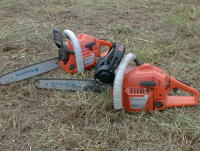 | チェーンソー セルフビルドに欠かせない最も中心となる工具が、このチェーンソーです。30cm強の丸太を切るにはやはり50cc以上のものが必要でしょう。バーサイズも15〜18インチがいいでしょう。材の種類によって、使い分けられるように、2〜3台違う機種があると非常に便利です。 |