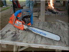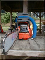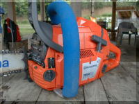 シリンダーカバーは マイナスドライバーでワンタッチで 取り外せ、エアクリーナーも 新型が取りつけられています。 パワー・重量感ともに 大型のログ作業に最適です。 |