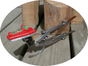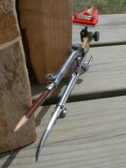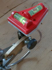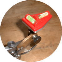 Front View アメリカ製LSスターレット社製の ダブルデバイダーをベースに してありますので、両側の針を自由に 調整することができます。 水準器はスクライブする手に干渉 しないようにコンパスの上側に セットアップされています。 |