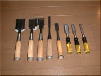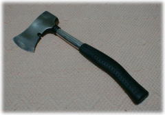 | アックス ノッチやグルーブを刻むときの西洋斧。軽めで刃の幅が小さいため狭いノッチのバリ落し等には非常に使いやすい。これは自作品ではありませんが、目立ては自分で行います。 |