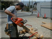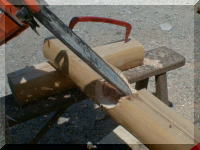 | Cノッチカット 太鼓引きではラフカットは行ないません。 一発でファイナルカットします。 グルーブもありませんので ノッチのみの加工となります。 ノッチが小さいため、チェーンソーは 小型の方が良いでしょう。 私は最初254XPでやりましたが オーバーカットしてしまいました。 |