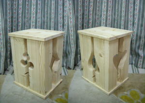 チェアは、最後にジグソーで4面をデザインカット。トランプ柄・・・・わかるかな?