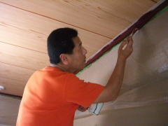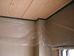 マスキングは24mmの幅が広いやつを使ったおかげで天井に塗料が付くこともない。