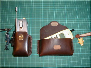 | Handyphone case2001年3月31日新作 国内用・海外用のそれぞれの携帯電話に 皮のケースを作りました。 |
