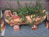 | ミニカヌー(3月5日新作) 丸太のプランターを作った後の端材で作った 切りだしのカヌー。ノアの箱舟のようでしょ。 |